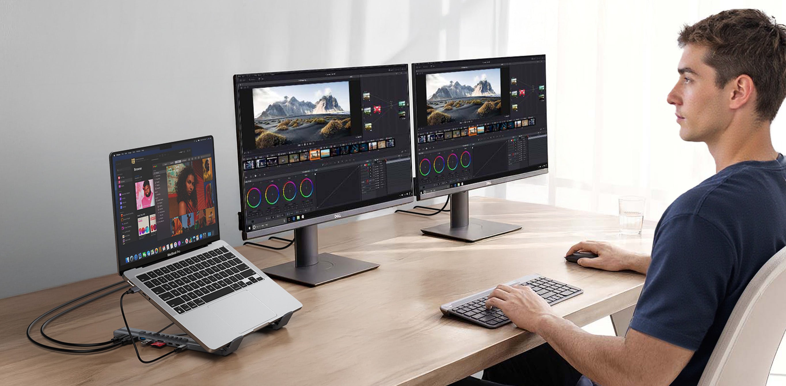 This setup supports external displays, full peripherals, and long work sessions — while keeping your workspace structured and distraction-free.